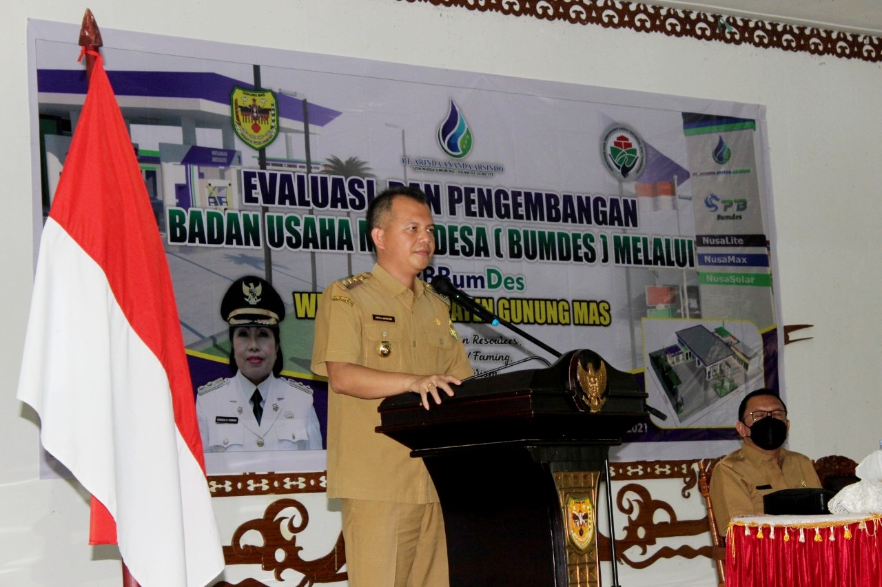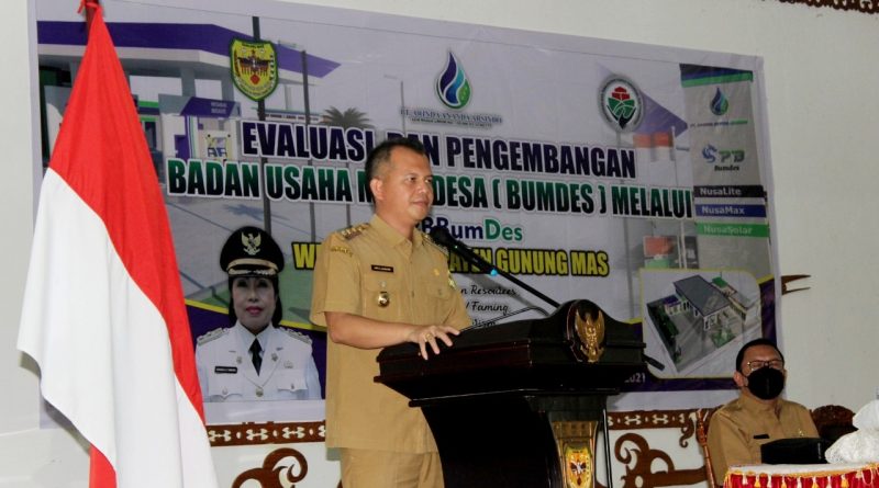“BUMDes didirikan untuk peningkatan Pendapatan Asli Desa (PADesa). BUMDes harus memiliki perbedaan dengan lembaga ekonomi pada umumnya,” ucap Bupati Gunung Mas Jaya Samaya Monong saat menyampaikan sambutannya Kegiatan Evaluasi dan Pengembangan Badan Usaha Milik Desa (BUMDes) Wilayah Kabupaten Gunung Mas di GPU Damang Batu, Selasa (26/10/2021).