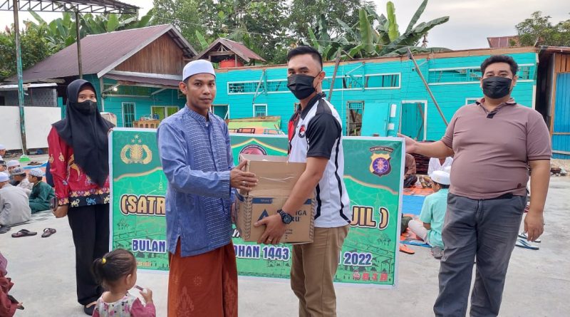 KUALA KURUN, VOICEBORNEO.COM – Polisi dari Satresnarkoba Polres Gunung Mas telah beberapa kali berbagi kasih kepada masyarakat yang ada di mushola Nurrul Fallah wilayah Kecamatan Kurun.