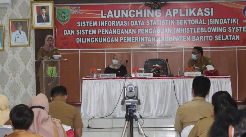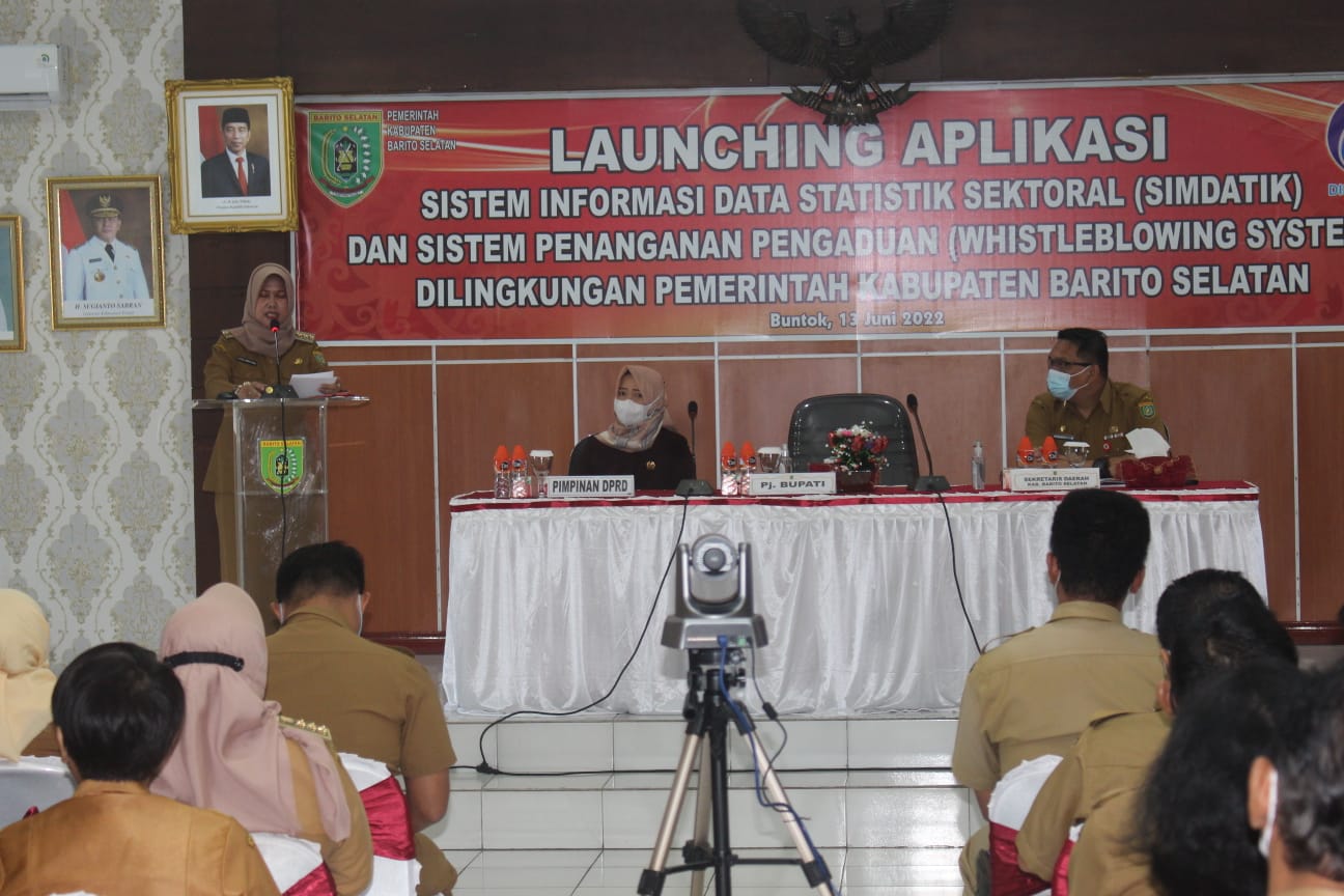 BUNTOK, VOICEBORNEO.COM – Pj Bupati Barito Selatan (Barsel) Lisda Arriyana S.sos secara resmi melaunching aplikasi sistem informasi data statistik sektoral, sekaligus aplikasi layanan sistem pengaduan ‘Whistleblowing System’.