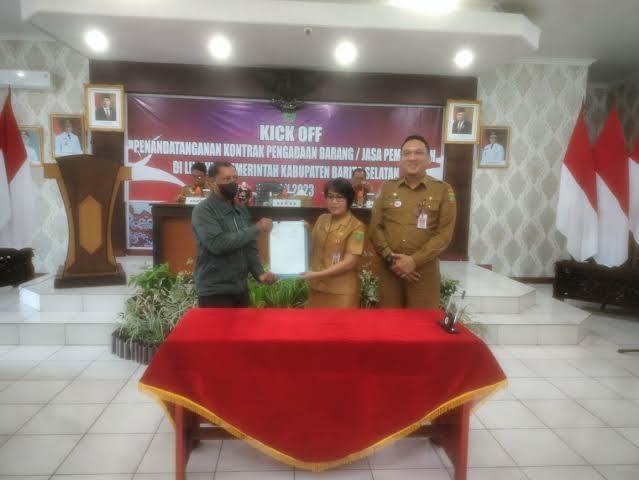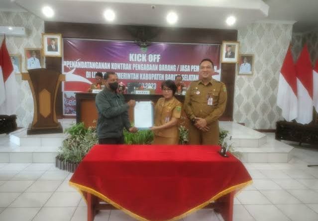 BUNTOK – Dinas Pekerjaan Umum dan Penataan Ruang (PUPR) Kabupaten Barito Selatan (Barsel) telah melaksanakan kick off penandatanganan kontrak pengadaan barang dan jasa pemerintah tahun 2023, Senin (16/1)