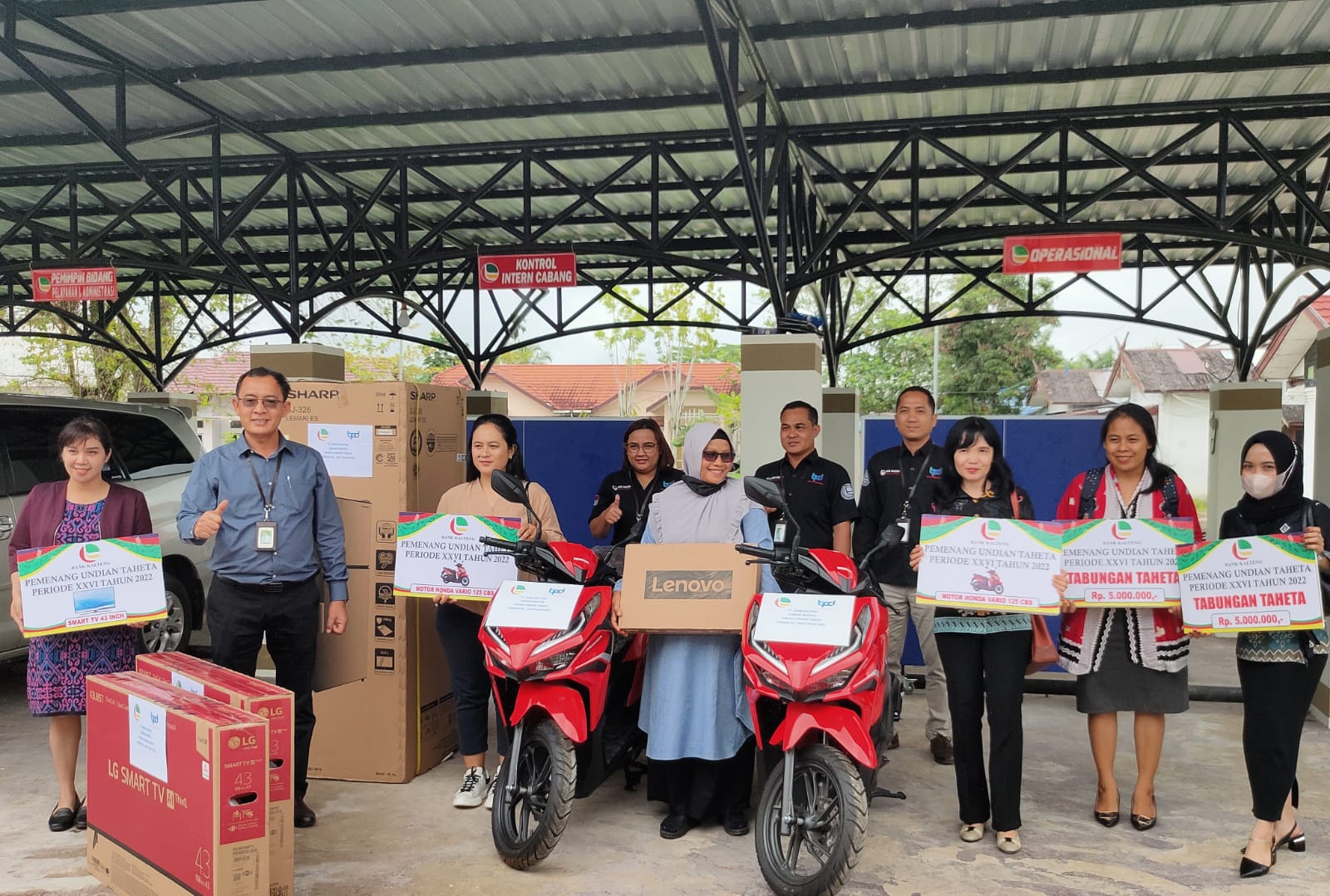 BUNTOK – Bank Kalteng Cabang Buntok menyerahkan hadiah kepada 10 orang nasabah dalam undian taheta periode ke 26 tahun 2022, Kamis (16/3/2023).