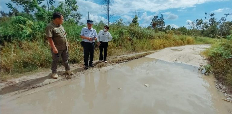 BUNTOK — Pj Bupati Barito Selatan (Barsel) Dr. Deddy Winarwan bersama Kepala PUPR Barsel Ita Minarni di dampingi Kepala Bidang (Kabid) Bina Marga M. Taufik melaksanakan peninjauan kondisi ruas jalan Desa Wungur Baru – Desa Baruang dalam rangkaian acara Kunjungan Kerja (Kunker) ke beberapa wilayah Kecamatan Gunung Bintang Awai (GBA).