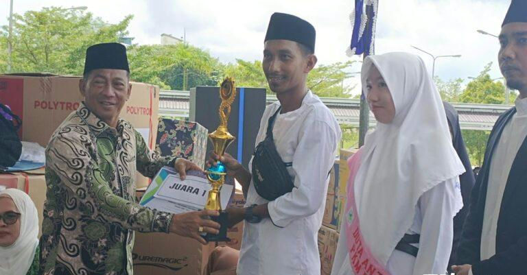 Puruk Cahu, -Anggota DPRD Kab.Murung Raya Heriyus M.Yoseph serahkan piala dan piagam pada pemenang pawai Akbar I Muharram 1445 H dari juara I sampai harapan 3 tingkat SMP di halaman Masjid Al-Istiqlal Rabu 19/07/2023.