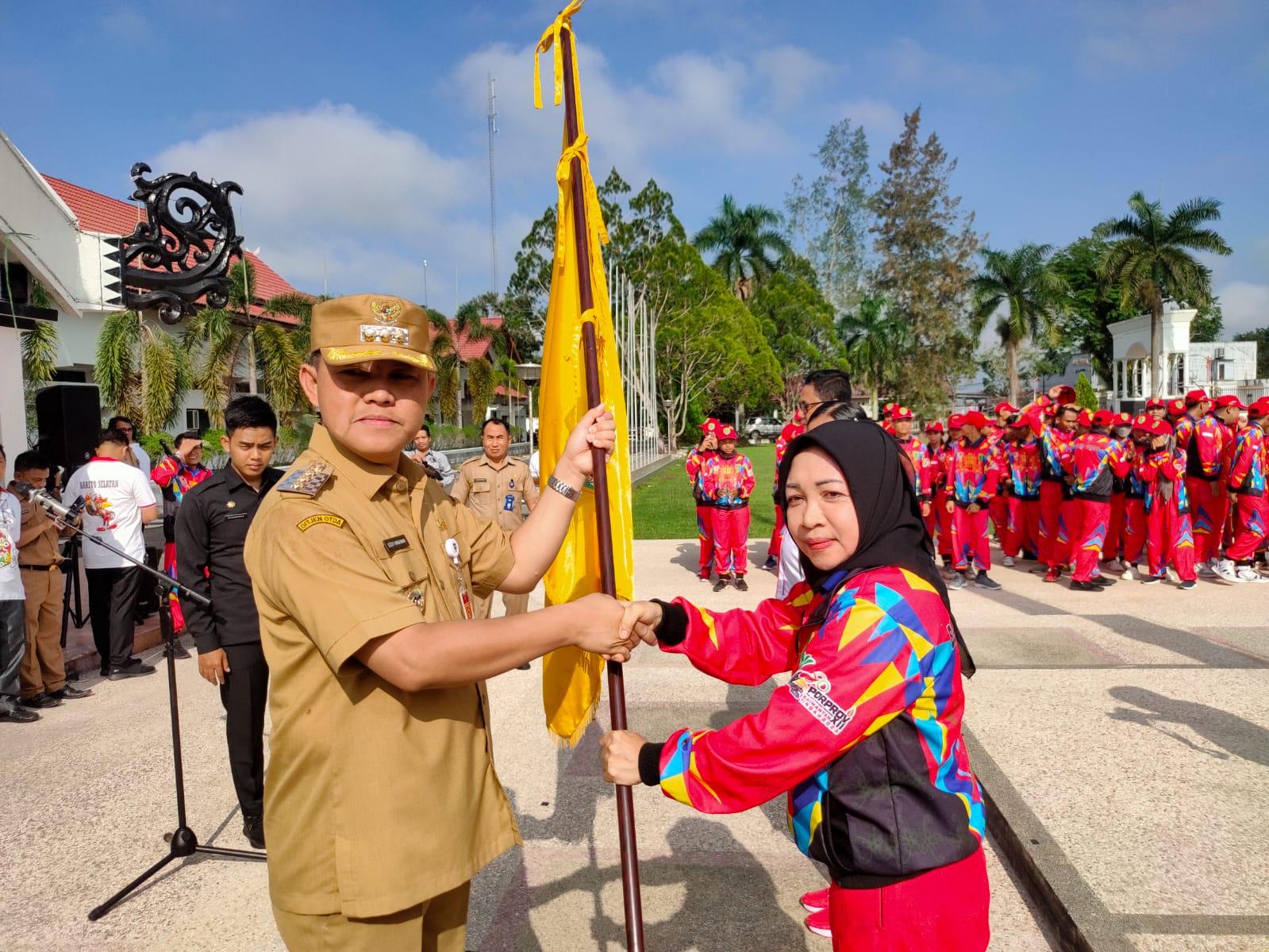 BUNTOK- Pemerintah Daerah Kabupaten Barito Selatan (Barsel) melaksanakan pelepasan atlet, pelatih dan official untuk mengikuti Pekan Olahraga Provinsi (Porprov) Kalimantan Tengah (Kalteng) ke XII Tahun 2023 yang di akan selenggarakan di Kabupaten Kotawaringin Timur (Kotim).