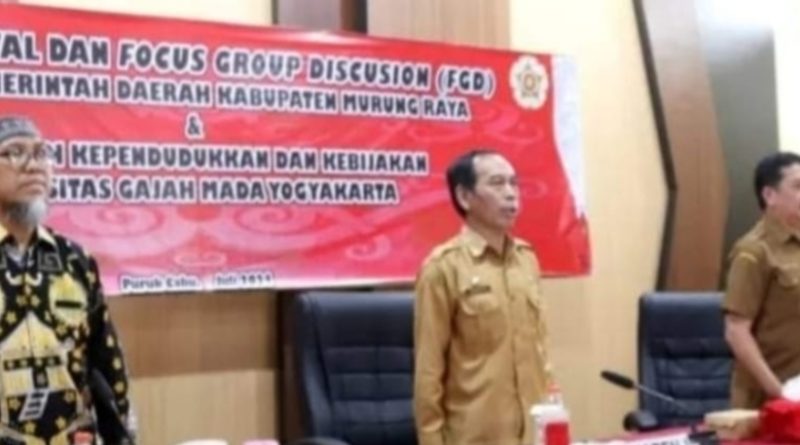 PURUK CAHU – Pj Bupati Murung Raya (Mura) Melalui Asisten I Sekda Mura, Serampang, membuka Fokus Group Discussion (FGD) di aula Kantor Bappedalitbang Mura, Senin (15/7).