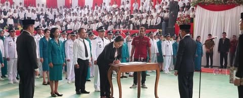 PURUK CAHU – Ratusan Kepala Desa, Badan Permusyawaratan Desa (BPD) dan Ketua Tim Penggerak PKK Tingkat Desa dikukuhkan jabatannya oleh Pj Bupati Murung Raya (Mura), Hermon, Kamis (19/9).