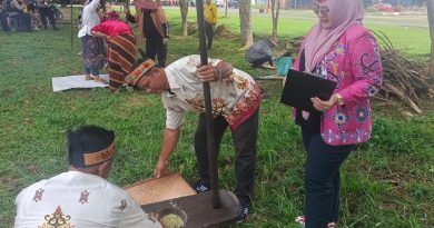 Sebelum dilaksanakannya peresmian, kedatangan Penjabat Bupati Barito Selatan, Deddy Winarwan bersama Ketua TP PKK, Erna Ardiani Palupi serta rombongan disambut dengan acara adat potong pantan. (gor)