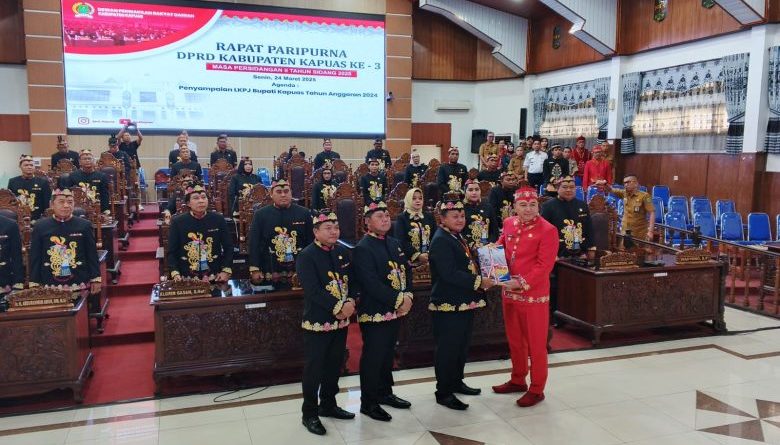 KAPUAS – Dewan Perwakilan Rakyat Daerah (DPRD) Kabupaten Kapuas menggelar Rapat Paripurna Ke-3 Masa Sidang II Tahun 2025 dengan agenda penyampaian Laporan Keterangan Pertanggungjawaban (LKPJ) Kepala Daerah Tahun Anggaran 2024. Rapat yang berlangsung di Ruang Rapat Paripurna DPRD Kapuas pada Senin (24/3/2025) ini menjadi forum evaluasi kinerja pemerintah daerah selama tahun anggaran sebelumnya.