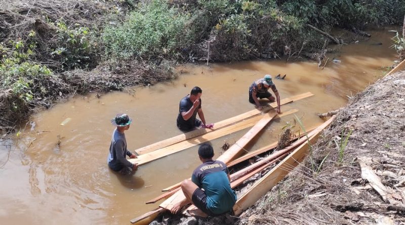 Satgas TMMD Kodim 1012/Buntok Manfaatkan Kayu Mengapung untuk Mempermudah Pengangkutan Melalui Sungai