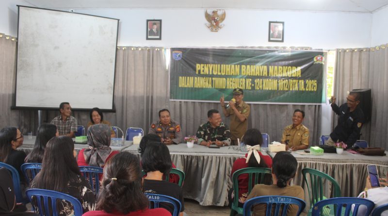 Talio, 27 Mei 2025 – Dalam rangka mendukung program pembangunan non-fisik, Satgas TNI Manunggal Membangun Desa (TMMD) Ke-120 Kodim 1012/Buntok menggelar penyuluhan hukum tentang bahaya narkoba di Balai Desa Talio, Kecamatan Karau Kuala, Kabupaten Barito Selatan, Senin (26/5).