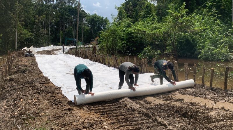 Barito Selatan, 1 Juni 2025 – Satgas TMMD ke-124 Kodim 1012/Buntok terus mempercepat proses pembangunan jalan desa di Desa Talio, Kecamatan Karau Kuala, Kabupaten Barito Selatan. Salah satu tahap penting yang kini sedang dikebut adalah pemasangan geotekstil atau giotex sebagai dasar penguat badan jalan.