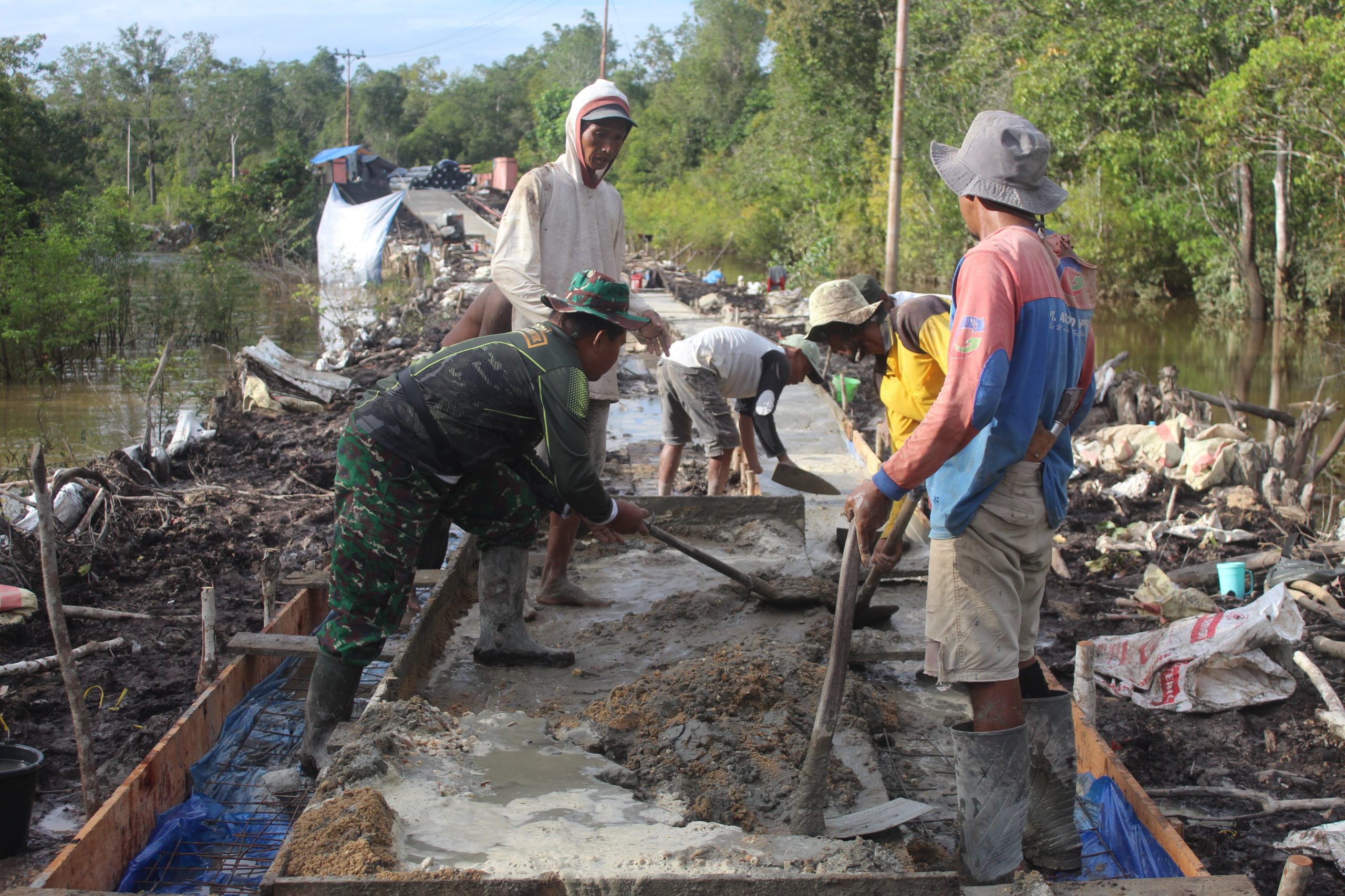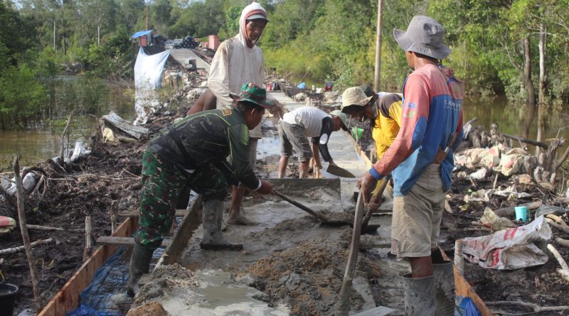 Semangat Pantang Menyerah Satgas dan Warga Dalam Pengecoran Jalan Desa Talio