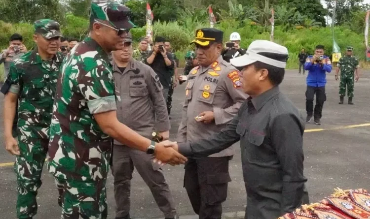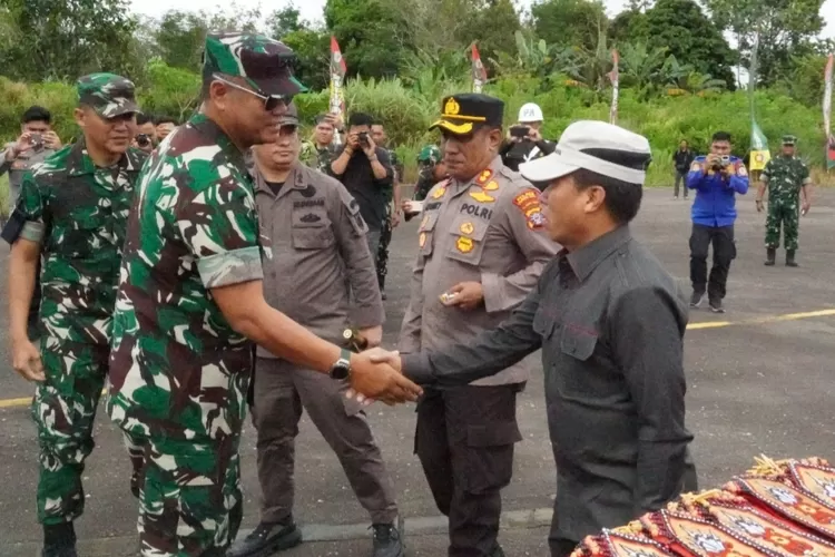 PURUK CAHU – Ketua DPRD Murung Raya (Mura) Rumiadi bersama unsur Forkopimda dan jajaran secara resmi menyambut kedatangan Wakil Kepala Staf Angkatan Darat (Wakasad), Letnan Jenderal TNI Tandyo Budi Revita, Gubernur Kalteng, Agustiar Sabran, Pangdam XII/Tpr, Mayjen TNI Jamallulael, Danrem 102/Pjg, Brigjen TNI Wimoko, Waaspers Kasad Bid.Renpers Spersad, Brigjen TNI Ade Rony dan Kasi Ops Kasrem 102/Pjg, Kol Inf M.Ishak H Baharuddin.