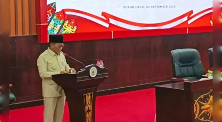 PURUK CAHU – Bupati Murung Raya Heriyus menjadi Inspektur Upacara Peringatan Hari Jadi ke-23 Kabupaten Murung Raya Tahun 2025, dihalaman Kantor Bupati, Jumat (1/8/2025).