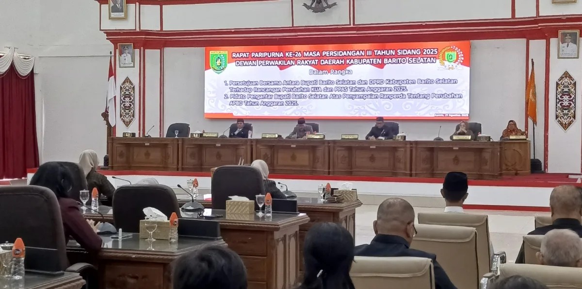 Rapat paripurna tersebut dipimpin Ketua DPRD Barsel, Farid Yusran, serta dihadiri pimpinan DPRD, Sekda, kepala OPD, tokoh