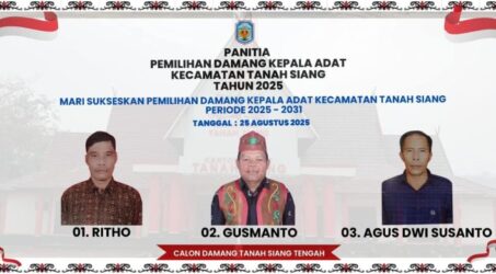 PURUK CAHU – Tidak terasa sebentar lagi atau hanya tinggal beberapa minggu kedepan, Pemilihan Damang Kepala Adat (Pildamang) di Wilayah Kecamatan Tanah Siang, Kabupaten Murung Raya (Mura), Provinsi Kalimantan Tengah (Kalteng) Tahun 2025 Periode atau Masa Bakti 2025 – 2031 akan segera dilakukan. Tepatnya pada hari, Senin (25/8/2025) beberapa minggu mendatang yang mengambil tempat langsung di Kantor Kecamatan Tanah Siang, Kelurahan Saripoi, Kabupaten Murung Raya (Mura), Provinsi Kalimantan Tengah (Kalteng).